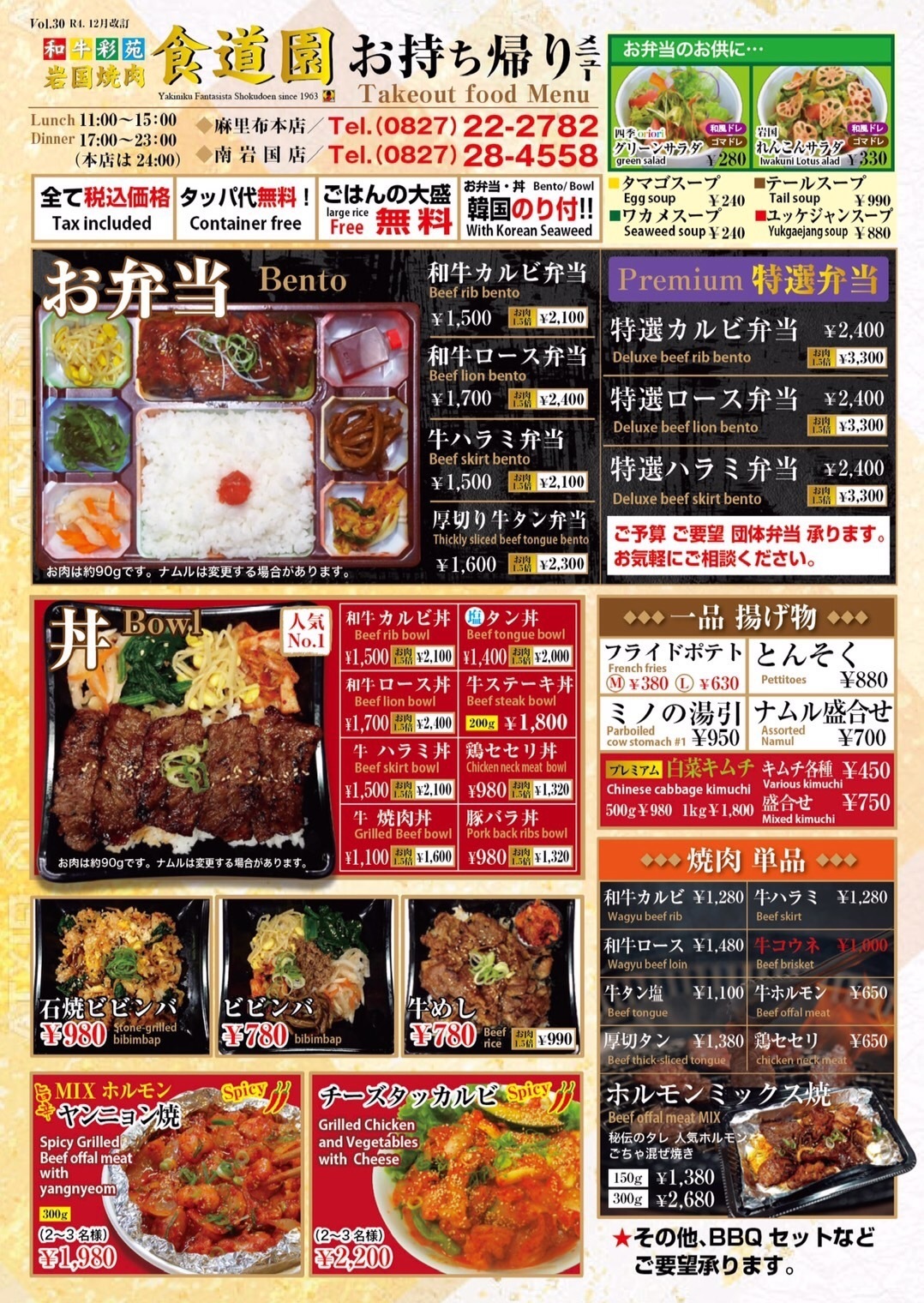 私たちは地元岩国の皆様に支えられ、営業させていただけていることを常に感謝し、その気持ちを忘れません。岩国祖生米や岩国れんこんなど、地元の食材を極力メニューに加え、また売り上げの一部を岩国福祉協会に毎月寄付させていただいております。