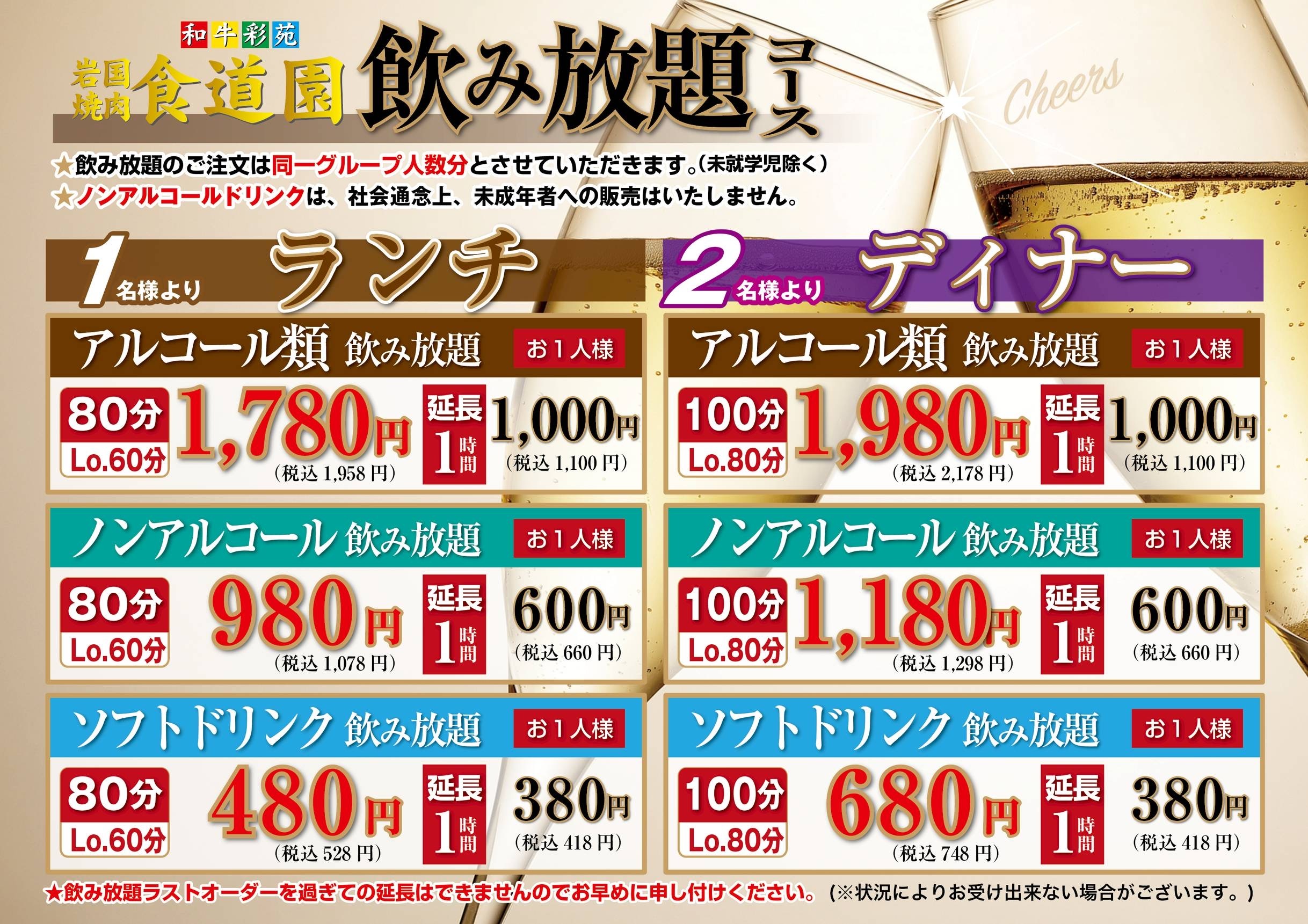 ※食べ放題コースのラストオーダーは、テーブル利用終了時間の20分前とさせていただきます。